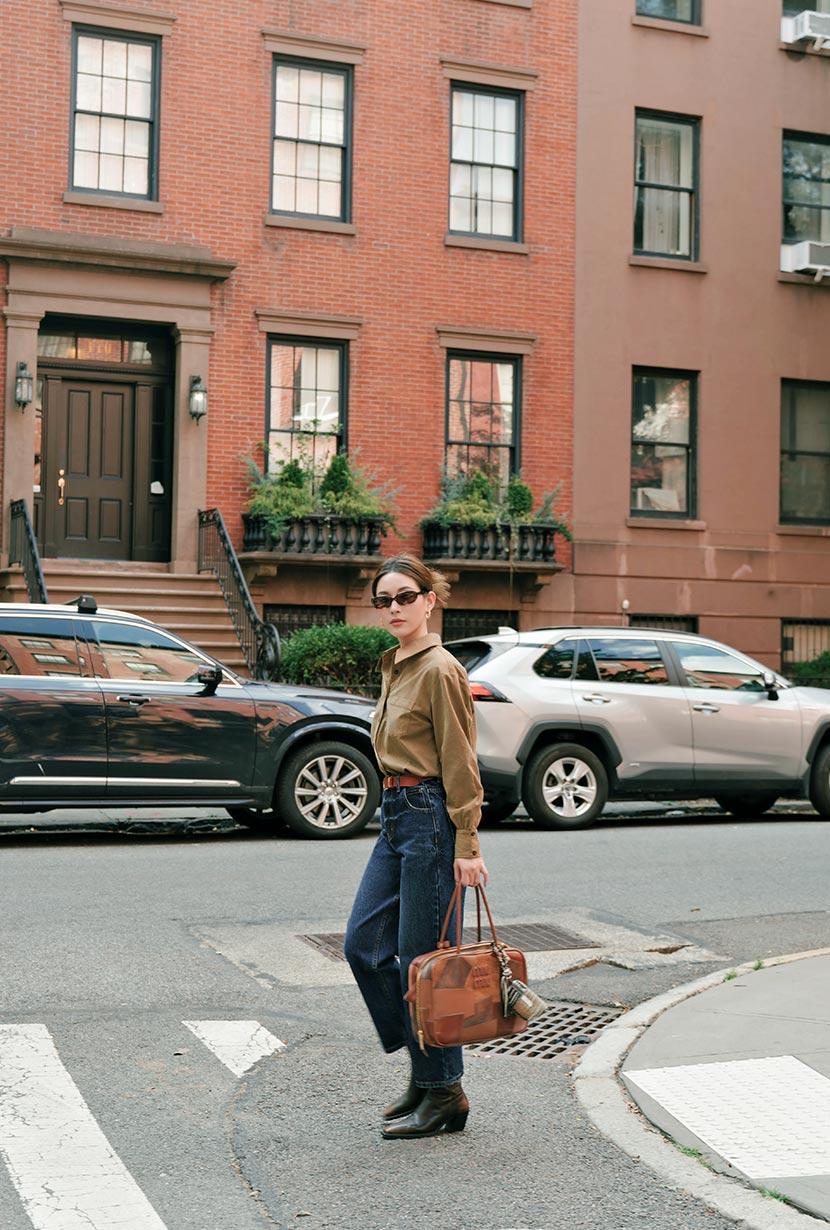 - Medium-weight cotton-tencel shirt with dropped shoulders and structured collar