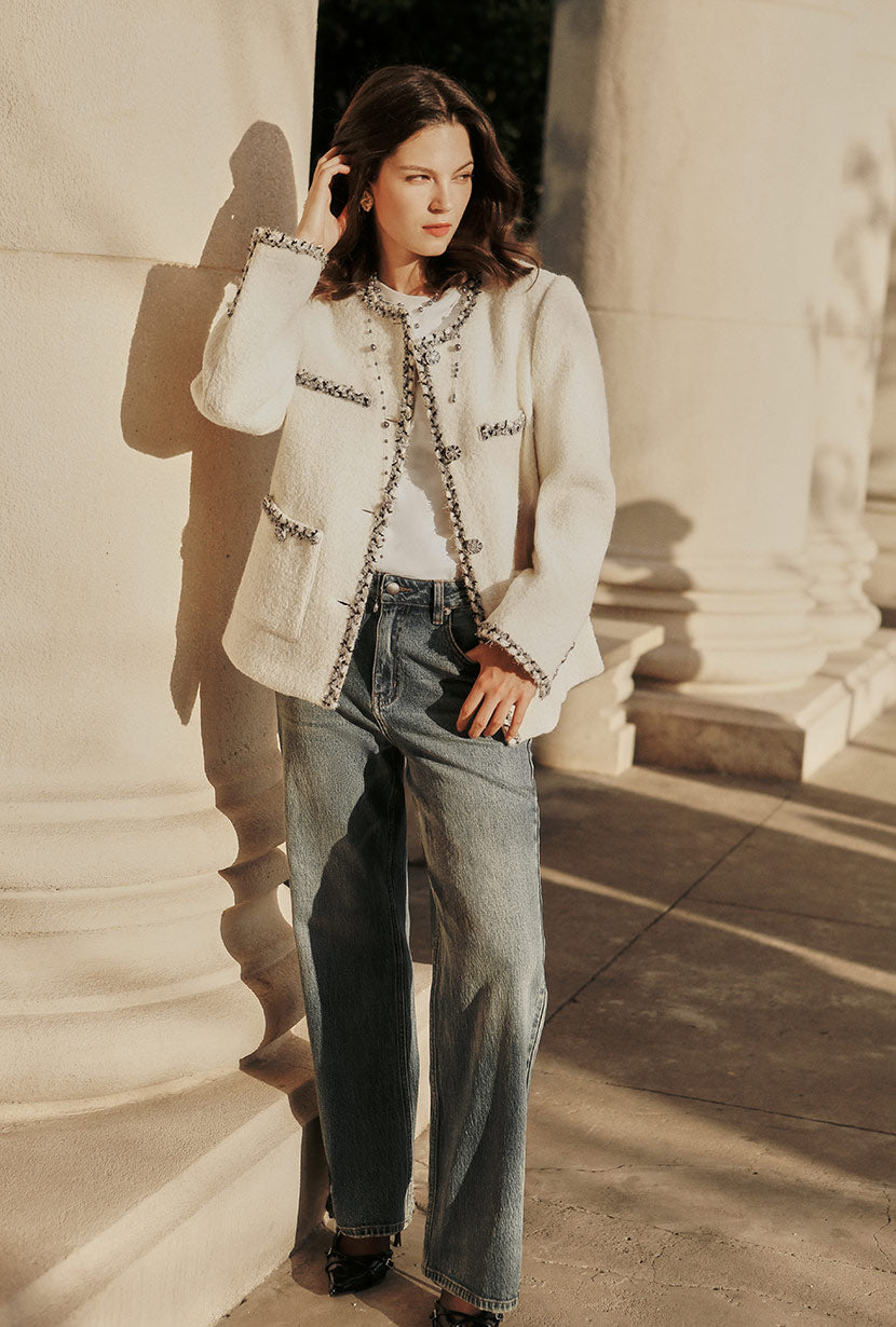 Charmaine Oversized Wool Tweed Coat - Ivory
